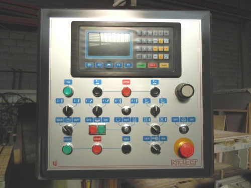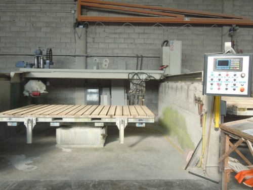 Automatic Bridge saw machine with motorized rotating table, max diameter of the blade 725, fixed head, laser, automatic program cuts and with pneumatic pressure bar