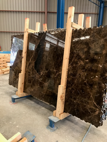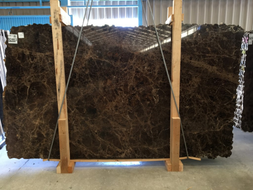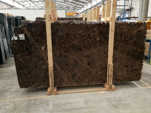Dark Emperador marble slabs, polished finish, quarried and manufactured in Spain. Packed in export wooden bundles.
